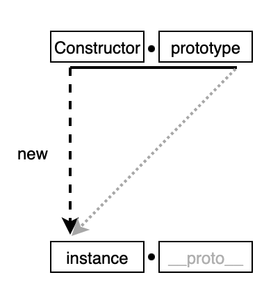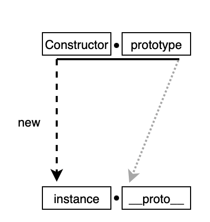 new 연산자로 Constructor를 호출하면 instance가 만들어지는데 이 instance의 생략 가능한 프로퍼티인 __proto__는 Constructoor의 prototype을 참조한다.